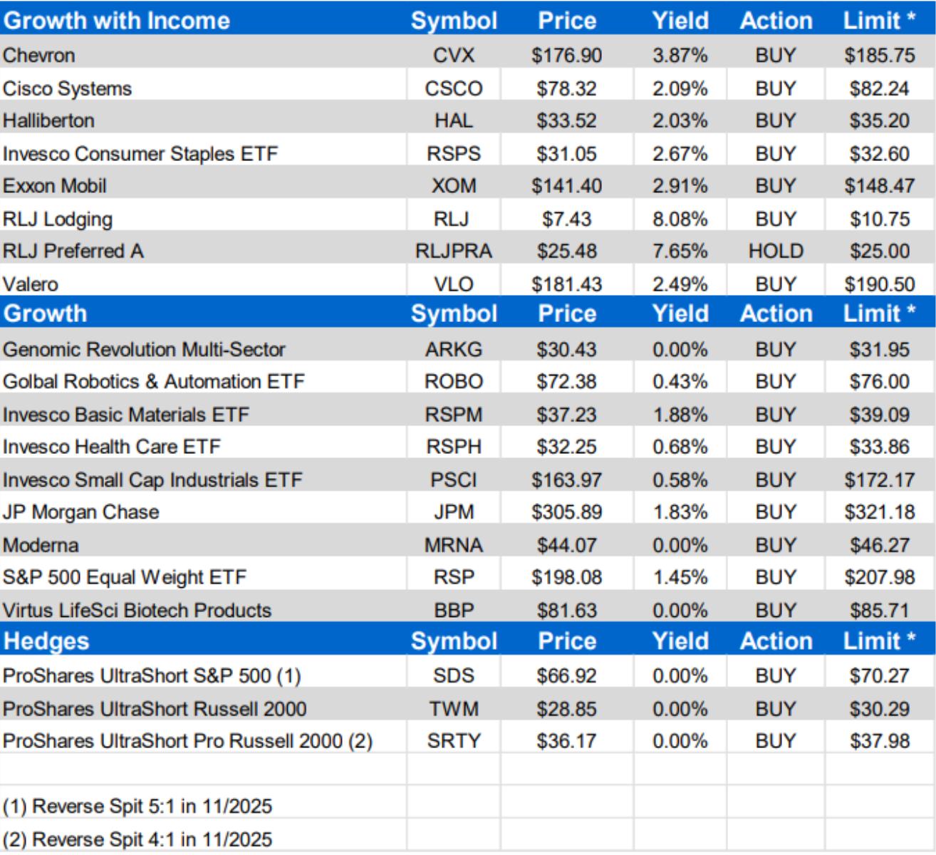ahead. All recommendations, as well as their dividend yields and buy/hold/sell recommendations, are summarized in the